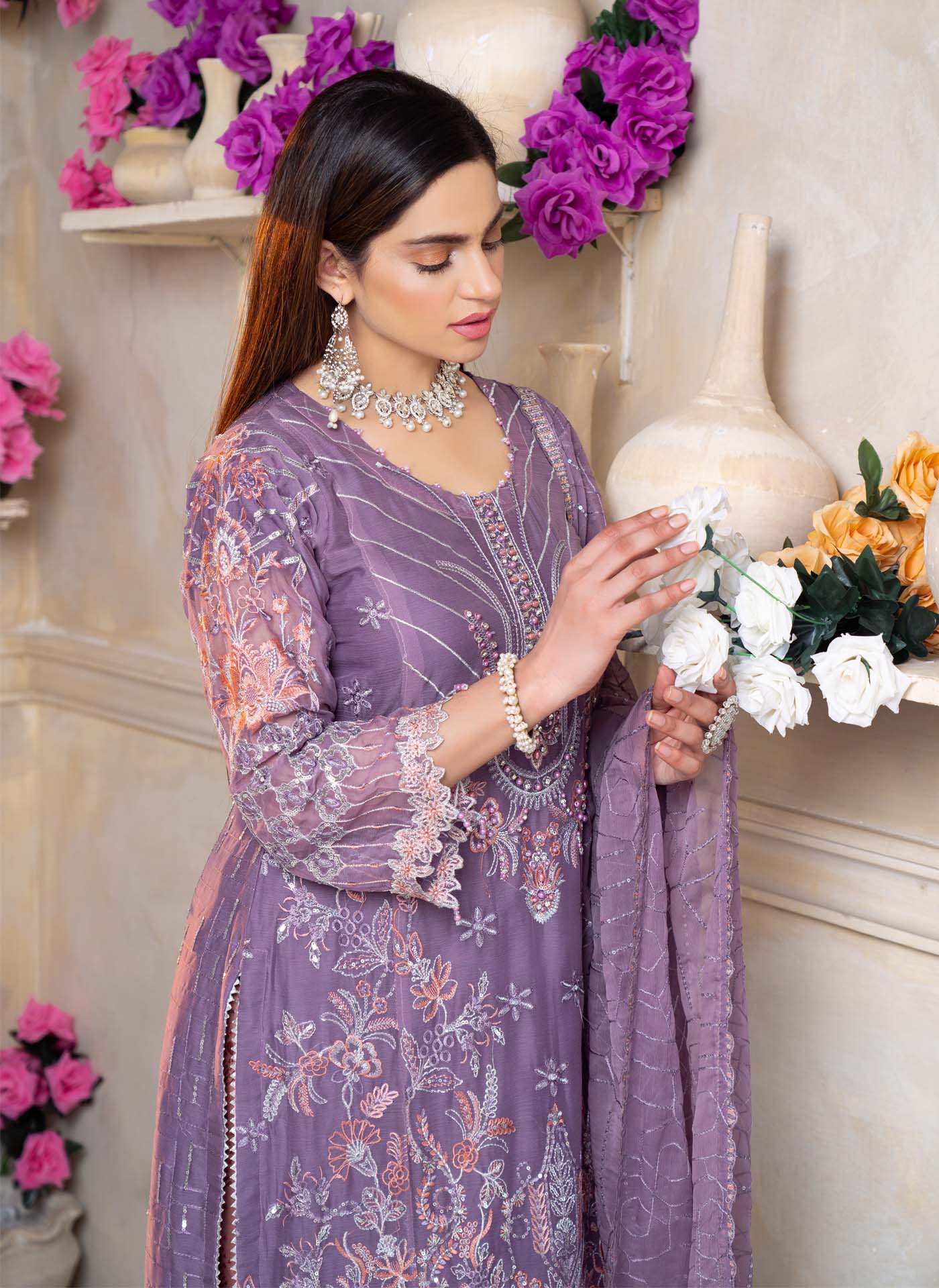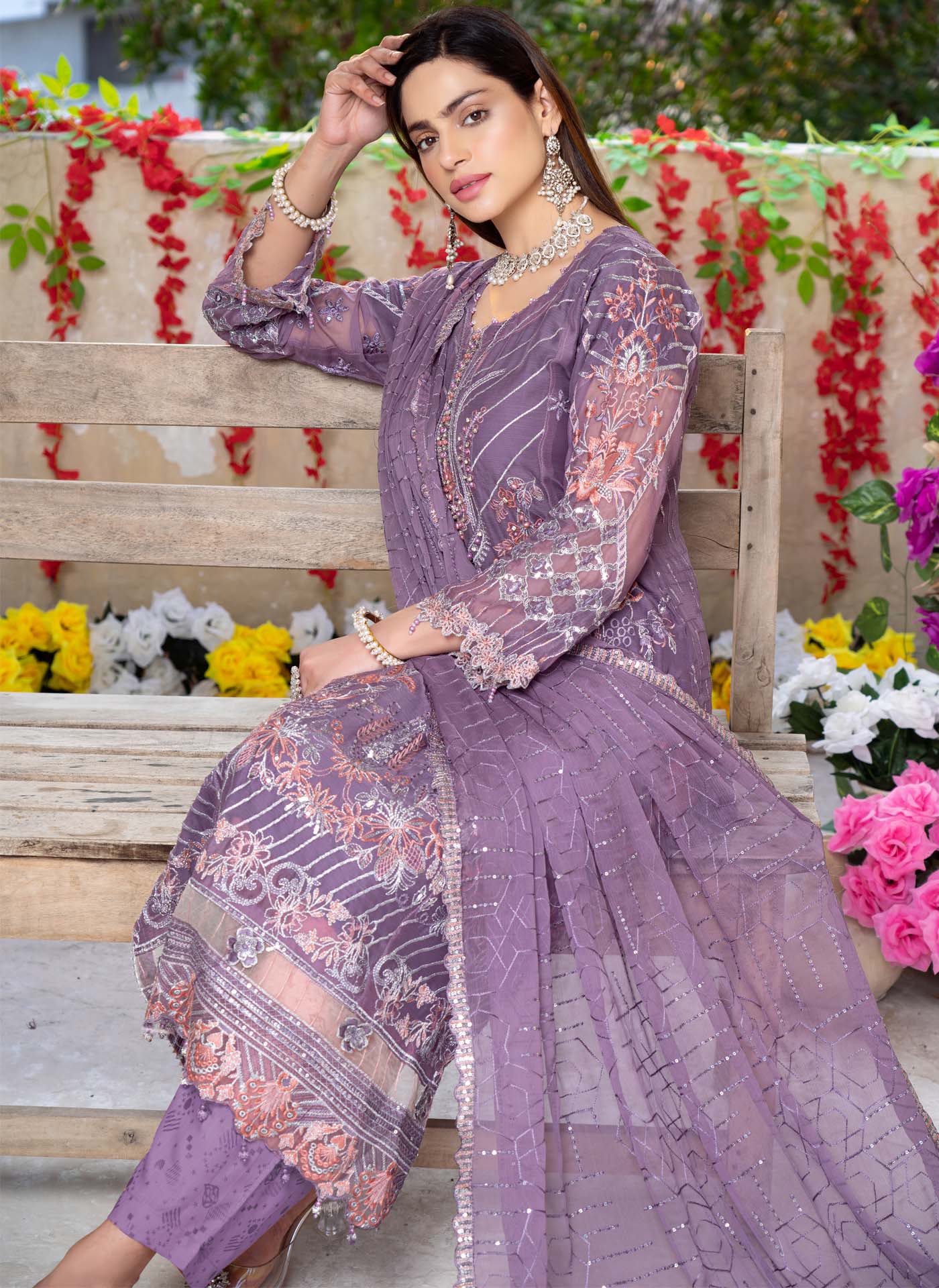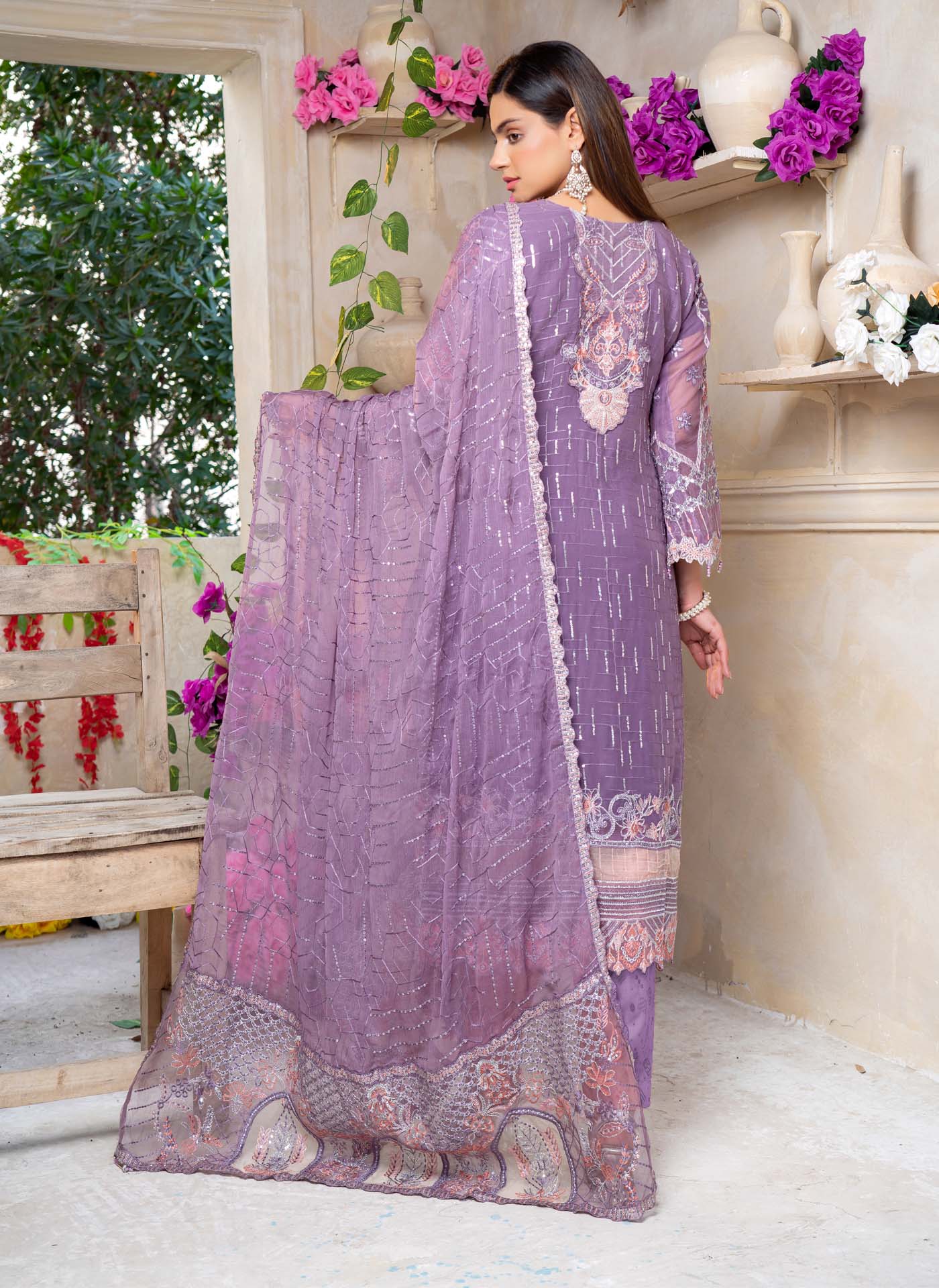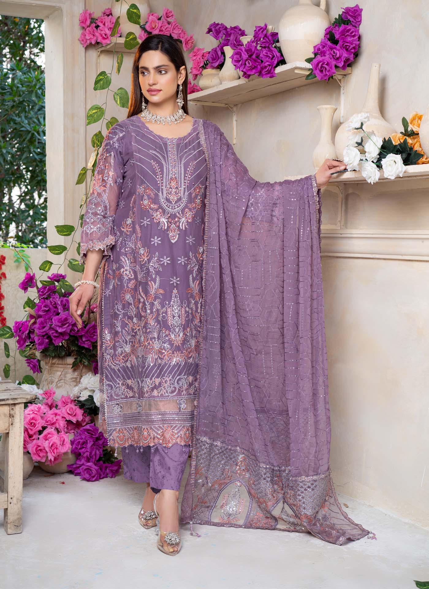 3 Piece Semi Stitched Collection By The royal arts, Attractive & Elegant chiffon Collection comes with: